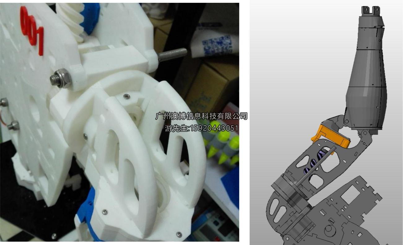 2 肩部回轉機構:內裝超薄軸承,渦輪蝸桿結構,大扭矩舵機驅動。